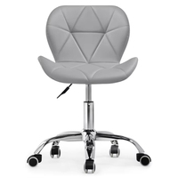 เก้าอี้โต๊ะหนังสังเคราะห์สีเทาอ่อนแบบทันสมัยมีการเย็บรูปทรงเรขาคณิตและฐานโครเมี่ยม