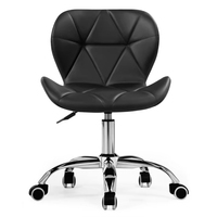 เก้าอี้โต๊ะหนังสังเคราะห์สีดำเงาพร้อมการเย็บทรงเรขาคณิตและฐานโครเมี่ยม